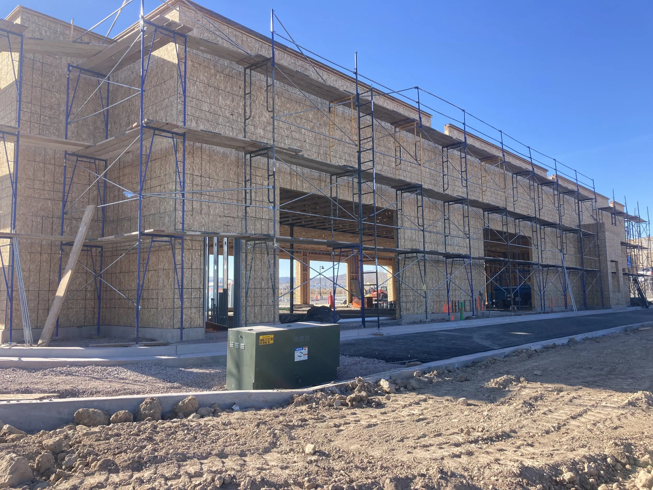 Located on one of Payson's busiest corridors just off the freeway, this new commercial build for Freedom Vapors was the most technically demanding project in our portfolio. The exterior called for a combination of stucco, EIFS, and a custom puzzle-pattern stone veneer that gives the finished building the look of handcrafted brickwork from the outside. EIFS alone is a multi-layer system that requires precision and patience at every stage — there are no shortcuts. Add in a heavy snow season hitting mid-project, and this job tested everything we had. Our crew pushed through, adapted to the conditions, and delivered a finished exterior in 2.5 months that holds up as well as it looks. When you're on the busiest stretch of Payson, the outside of your building has to say something, and this one does.